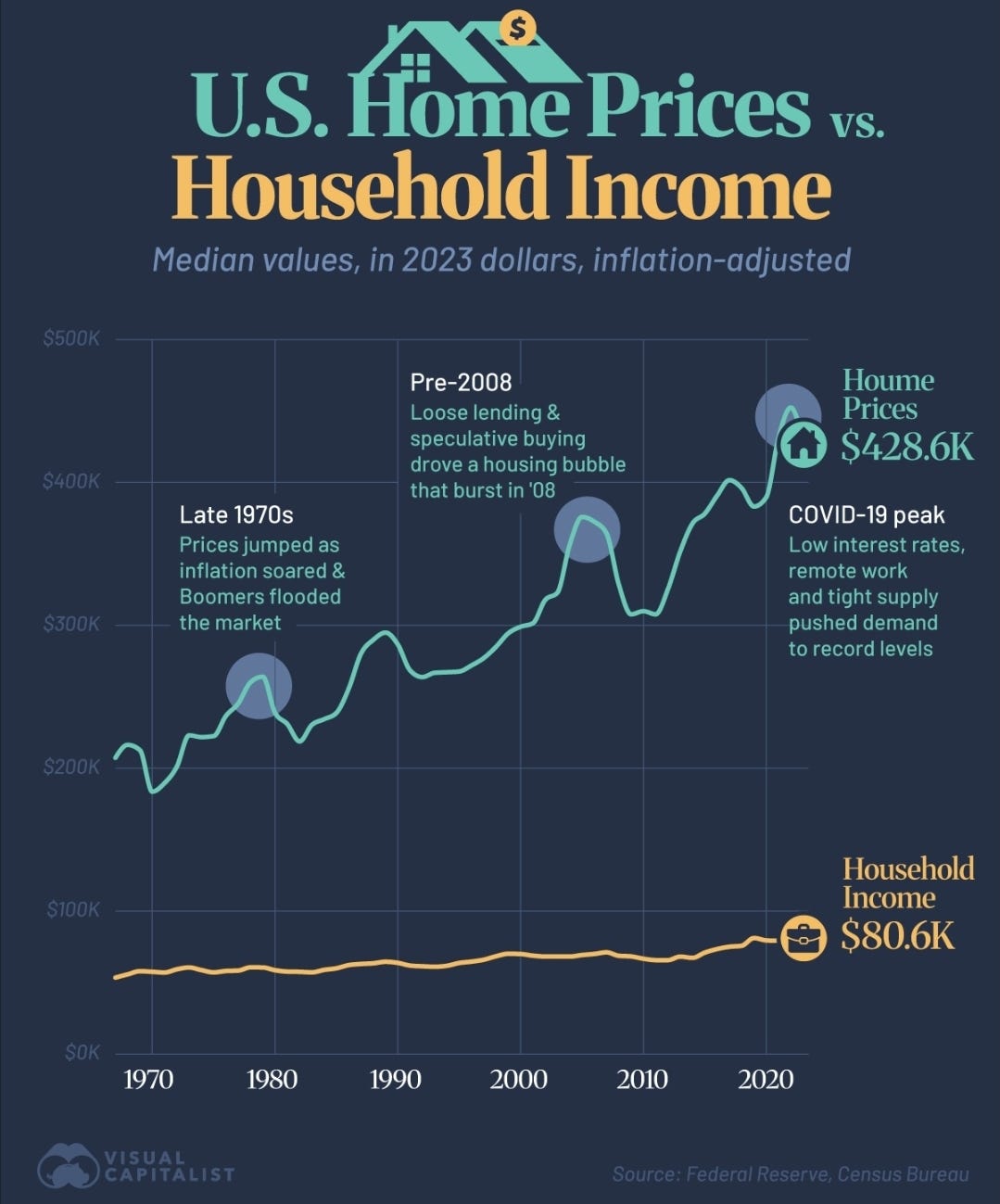 The same monetary mechanisms that enslaved nations through sovereign debt now enslave individuals through housing financialization. Central banks, particularly the Federal Reserve, flood markets with artificially cheap credit, deliberately inflating asset bubbles in real estate. Since 2000, median home prices have increased by over 300% while median household incomes have barely doubled. Engineered wealth extraction, operating through the levers of monetary policy, accounts for this divergence.12