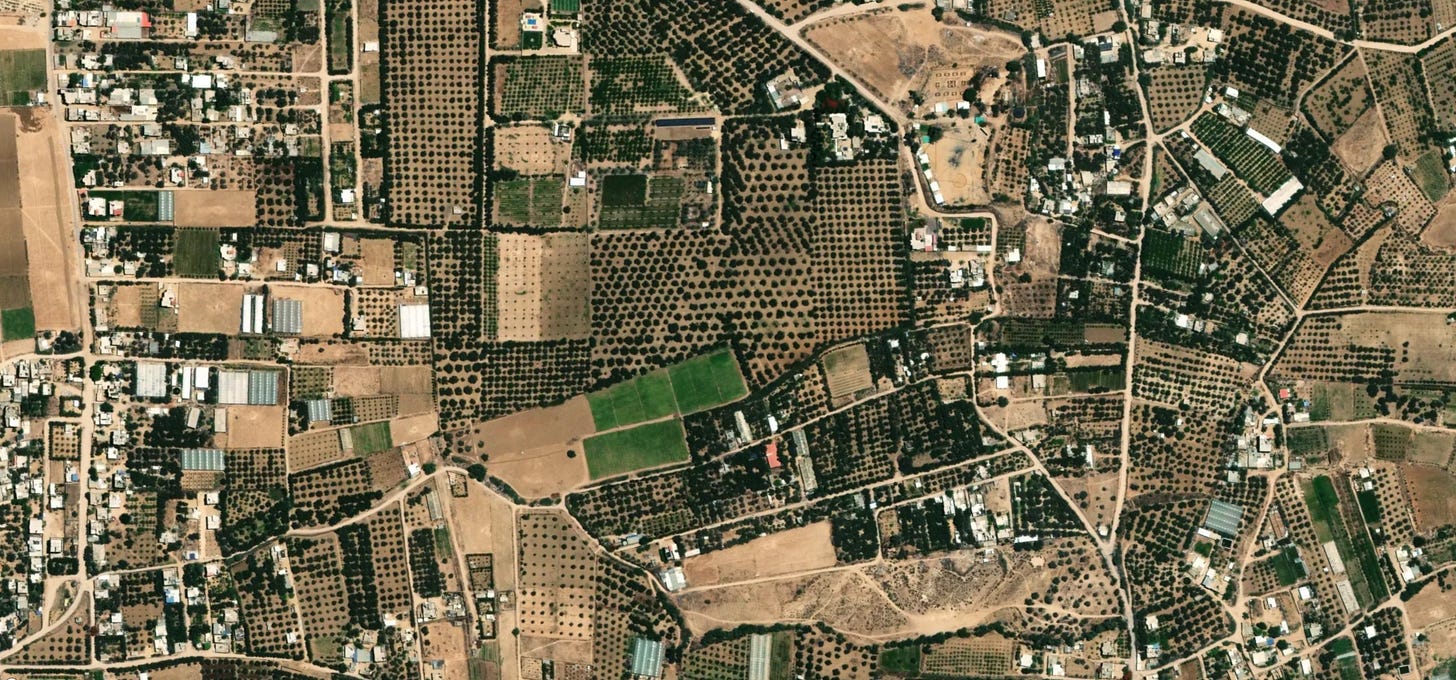 For example, in this aerial footage, see every green dot? Those are trees. They are a lifeform that has nothing whatsoever to do with the conflict.